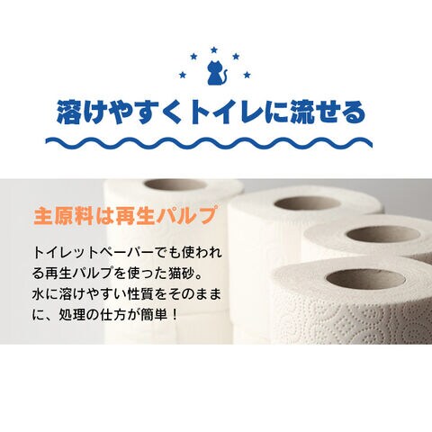 溶けやすくそのままトイレに流せる猫砂です。