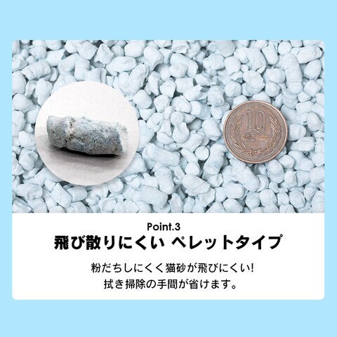 粉だちしにくく猫砂がとびにくい、大きめなペレットタイプ