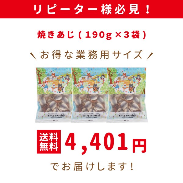 【初回限定】焼きあじ190g×3袋 送料無料 珍味 酒のつまみ おつまみ 魚介 アジ 宅飲み 大容量 業務用
