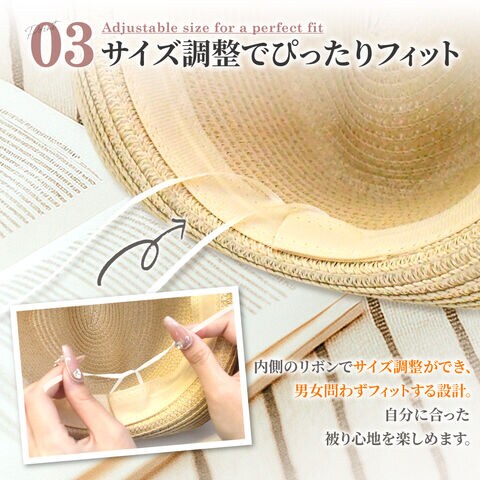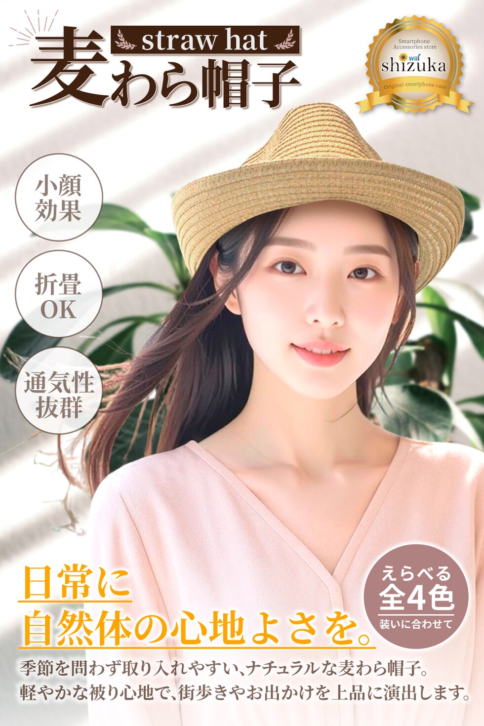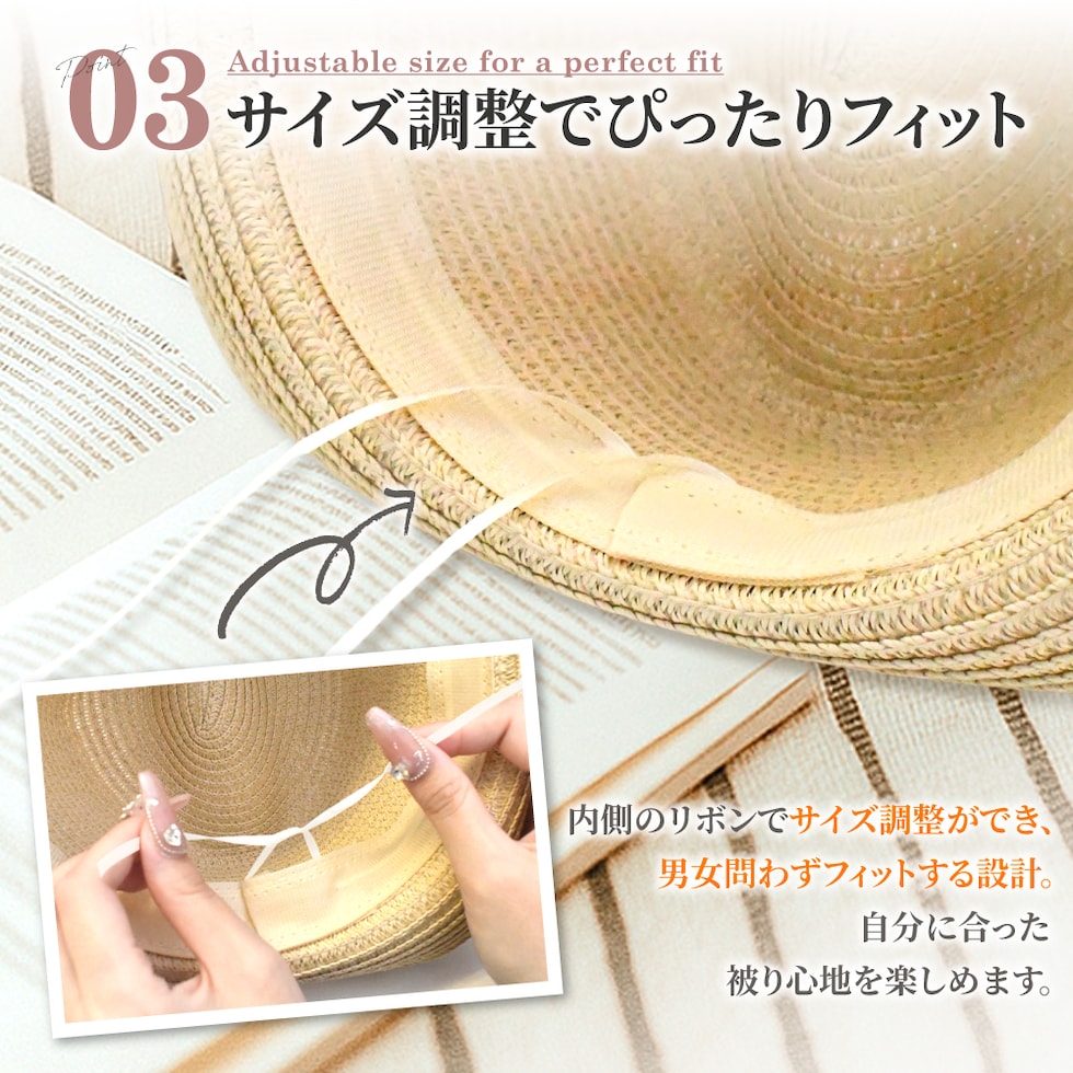 シズカウィル 麦わら帽子 麦わらハット 帽子 レディース メンズ ストローハット 中折れハット むぎわら帽子 ペーパー ハット 春夏 遮光 夏物 サイズ調整 麦わら つば広 折りたたみ ファッション 日差し 日よけ 紫外線 海 ビーチ 旅行 おしゃれ かわいい カジュアル ホワイト 1個入り
