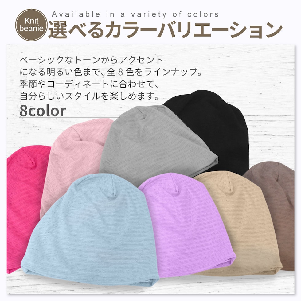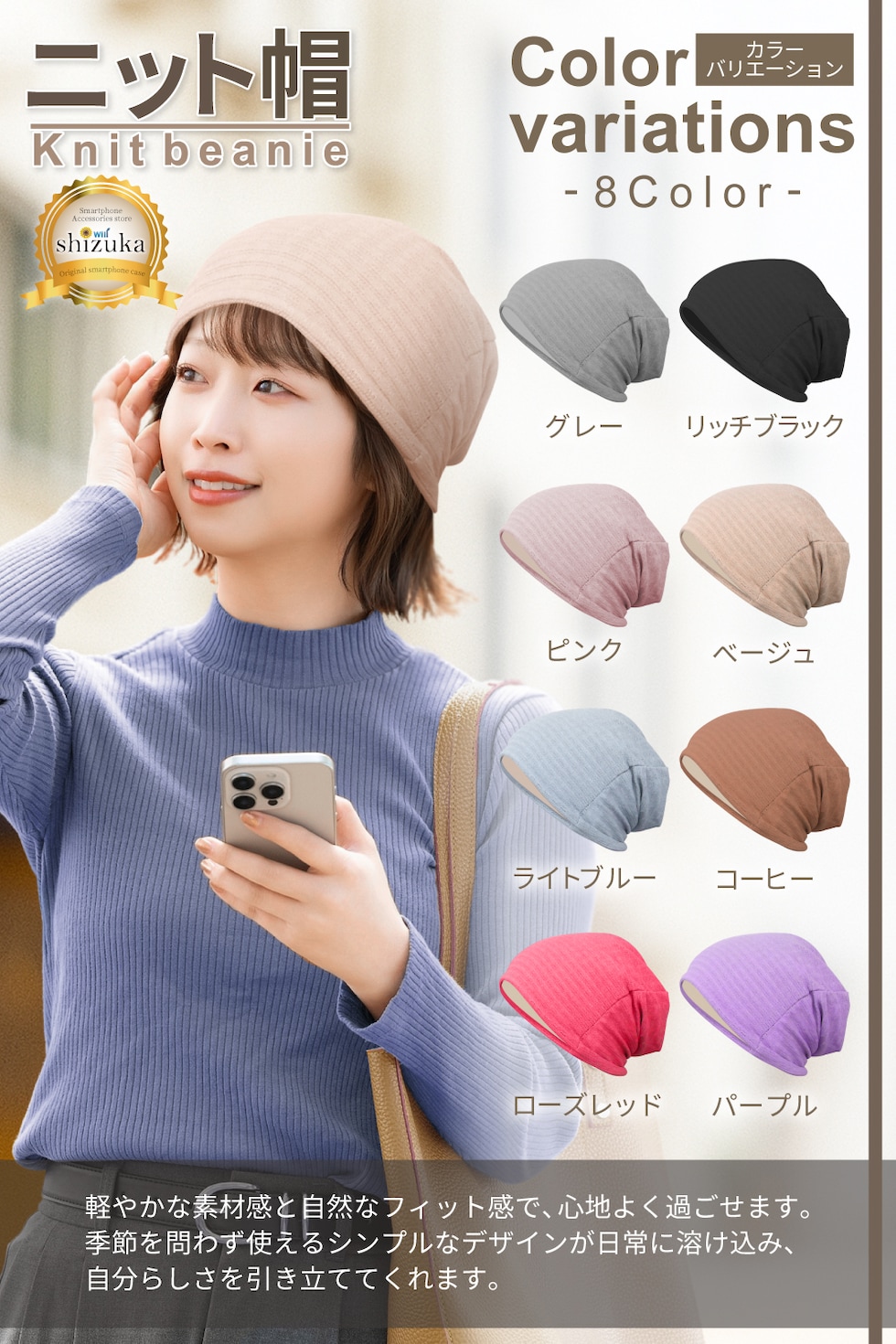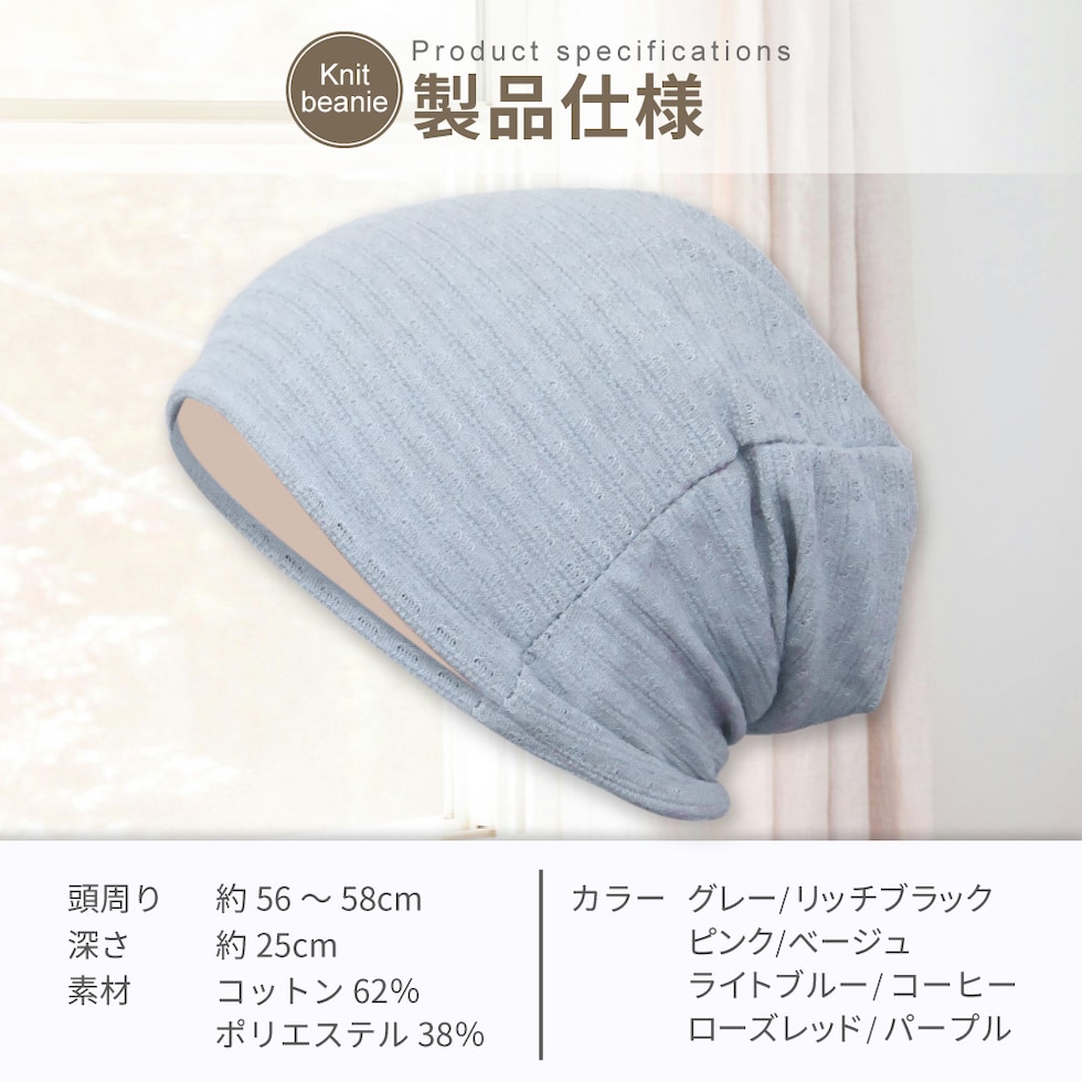 = 伸縮性のあるリブ編みが頭にやさしく沿い、長時間でも快適です
