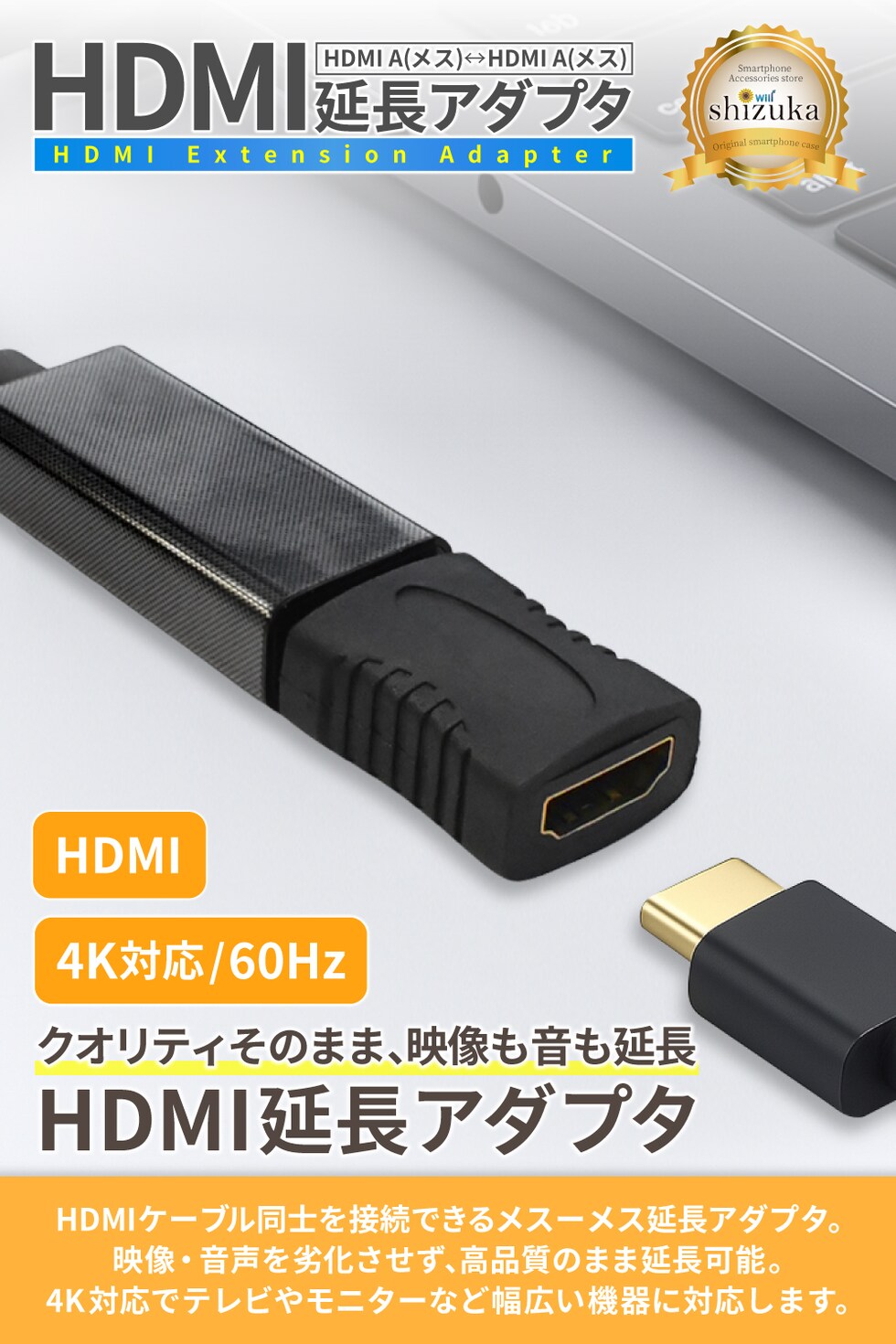 シズカウィル 延長アダプタ メス 高速転送 4K高画質 延長コネクタ アダプター 延長 プラグ Windows MacBook パソコン ノートPC TV Stick スティック 軽量 テレビ 接続 モニター ミラーリング ブラック 1個入り