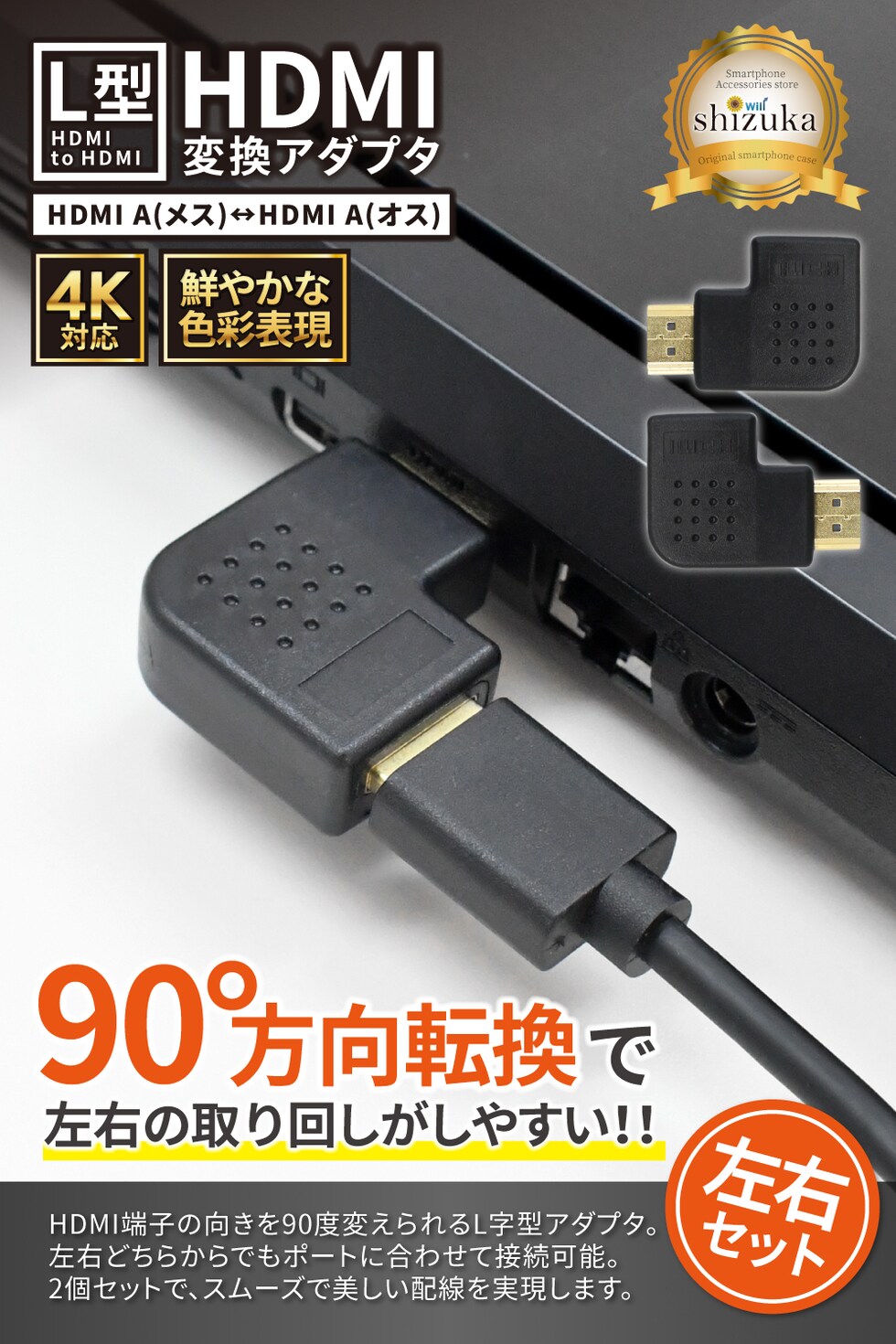 シズカウィル HDMI 変換アダプタ L型 オス メス 高速転送 4K高画質 Windows MacBook iPhone android iPad 対応 ブラック 2種 2個セット