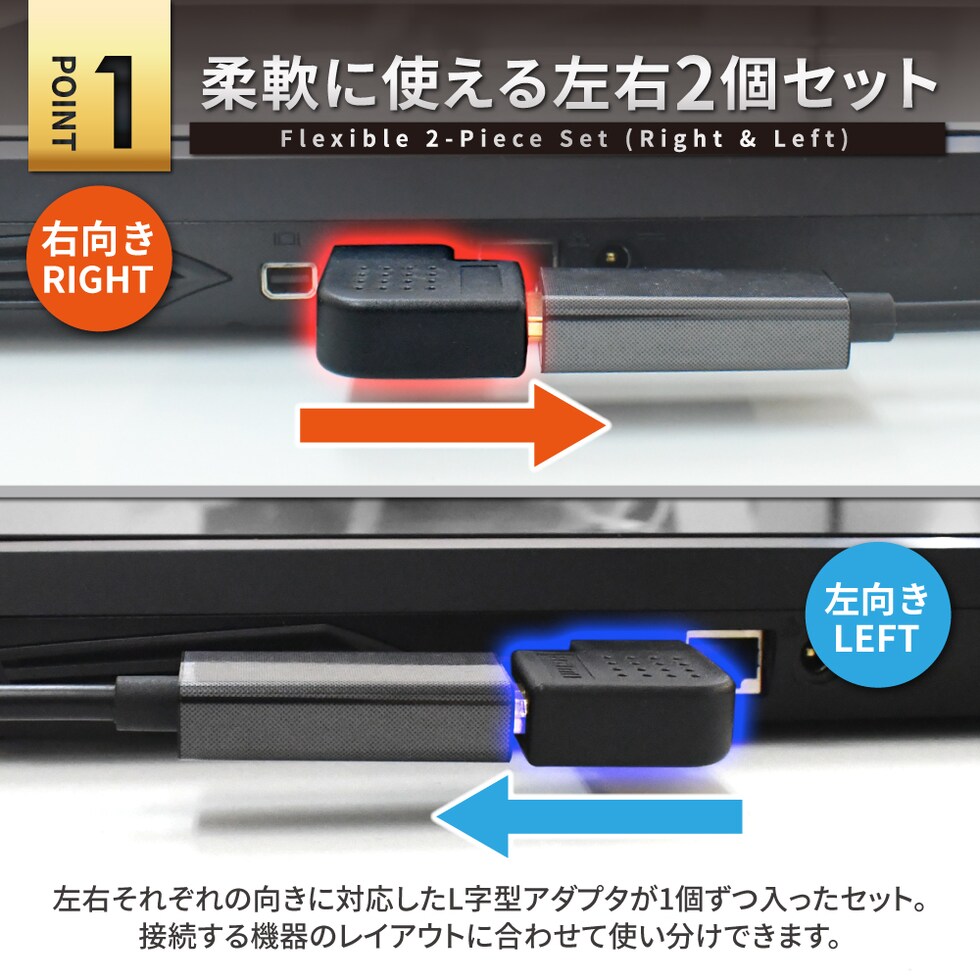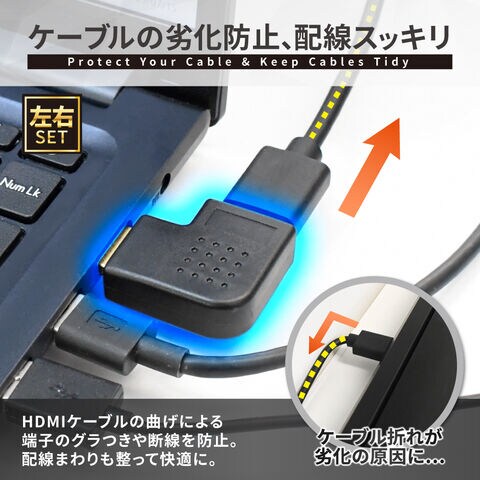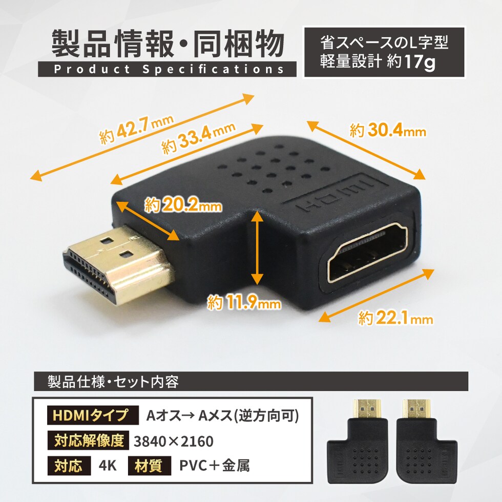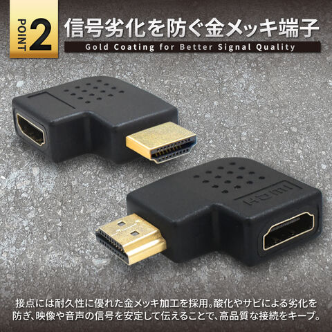 HDMI端子の向きを90度変換できるL字型アダプタ。