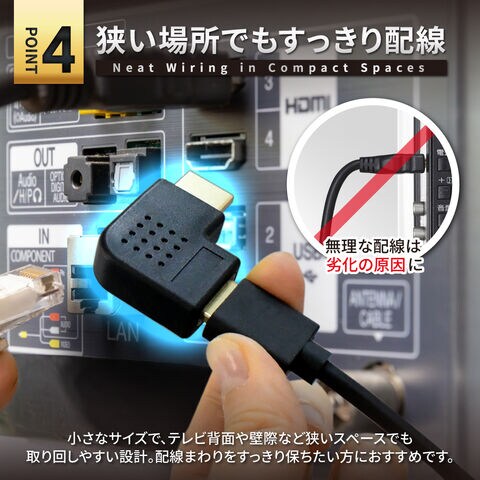 狭いスペースでもスムーズに配線でき、映像出力も快適に!