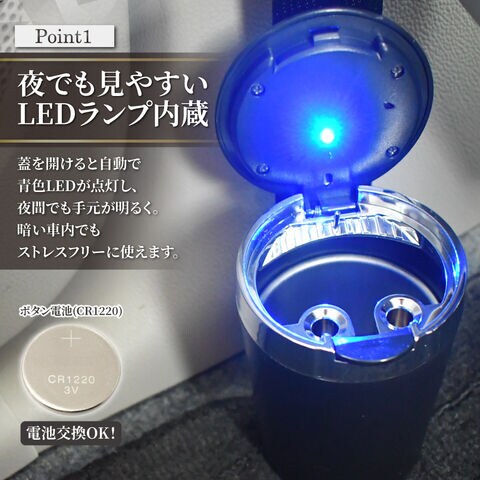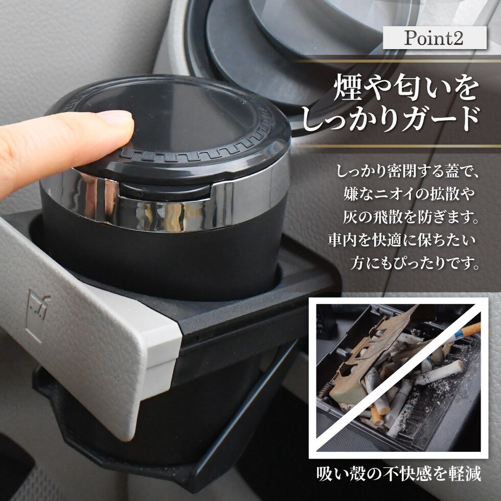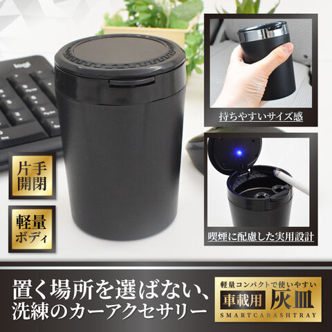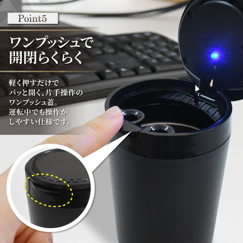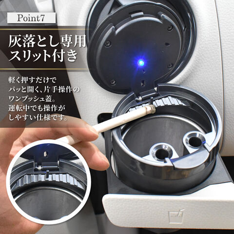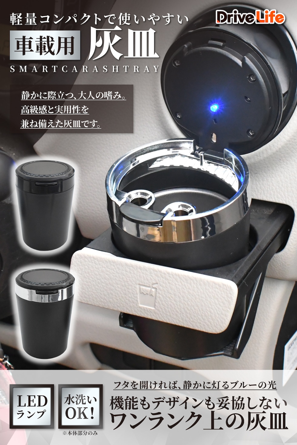 DriveLife ドライブライフ 車載灰皿 車 LED搭載 自動点灯 フタ付 ワンタッチ式 灰落とし 火消し穴 大容量 高温耐性 耐火 防臭 タバコ置き カーアクセサリー ブラック 1個入り