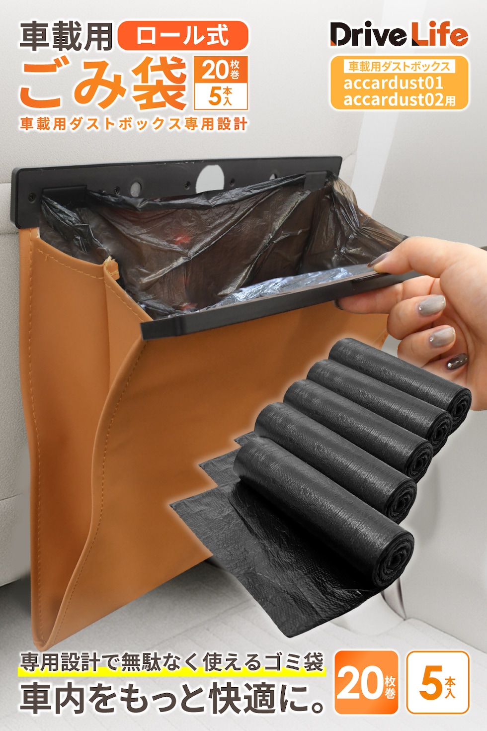 DriveLife ドライブライフ 車用ゴミ箱 ゴミ袋 ロール式 車用ゴミ袋 車載ごみ袋 車内 ごみ袋 ずれにくい ダストボックス 収納ケース 収納ボックス コンパクト 省スペース カー用品 小物入れ アウトドア 大容量 簡単設置 20枚巻×5本セット