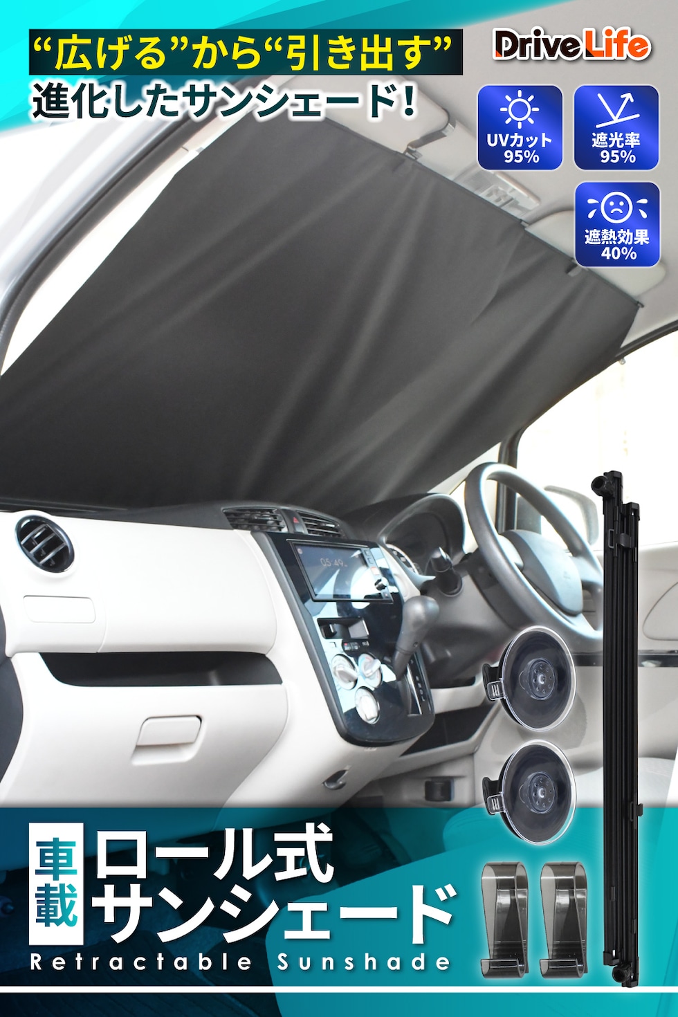 DriveLife ドライブライフ サンシェード 車 ロール式 車載 フロントサンシェード 遮光 暑さ対策 日除け 車用サンシェード 自動収縮 SS03 1個入り