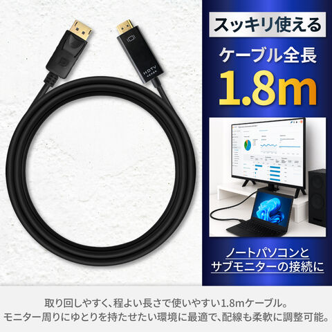 DisplayPort to HDMI 変換ケーブルディスプレイポート ( オス ) → HDMI A ( オス )