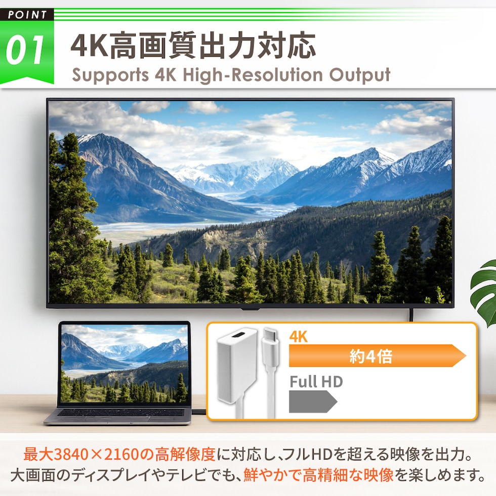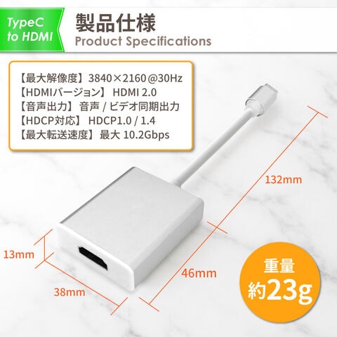 仕様:Type-C to HDMI 4K高画質