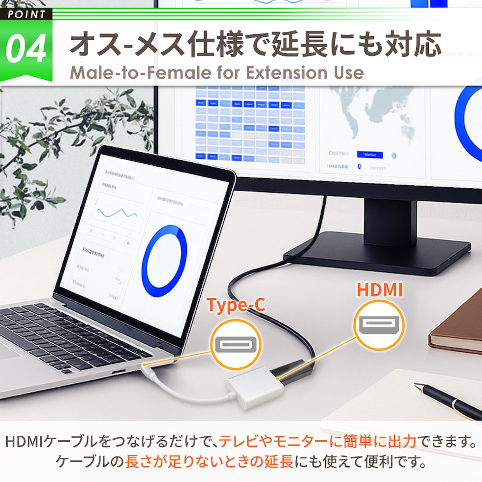 Type-C ( オス ) → HDMI ( メス )