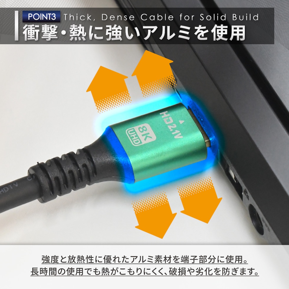 = 衝撃・放熱性に強いアルミ素材を採用、破損・劣化を防ぎます