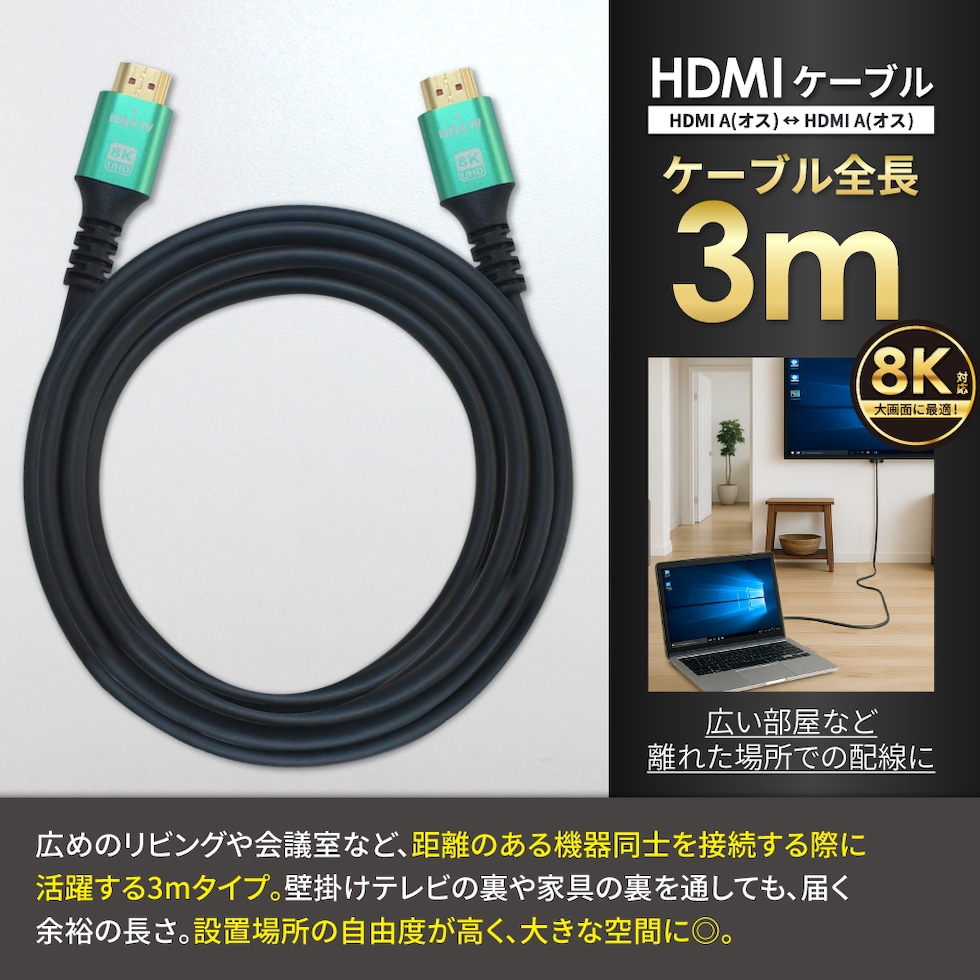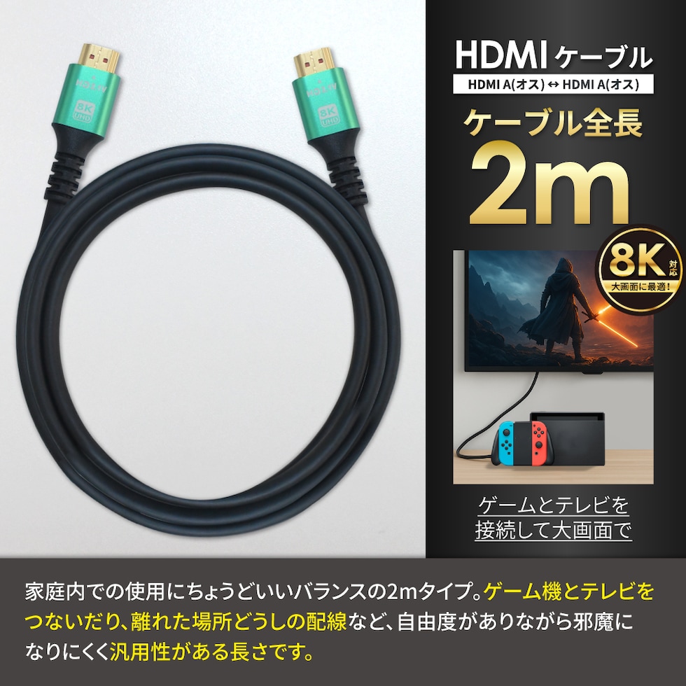 HDMI 延長ケーブル 8KHDMI A ( オス ) ⇔ HDMI A ( オス )
