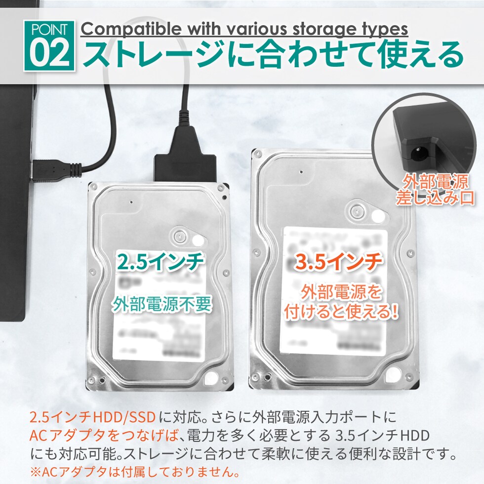 = 2.5インチのHDD / SSDへ、これ1本で接続可能