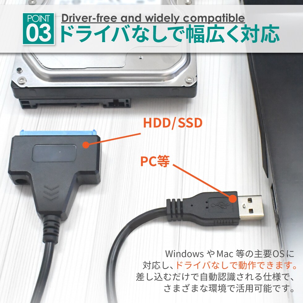 ■SATA to USB 変換ケーブルの特徴
