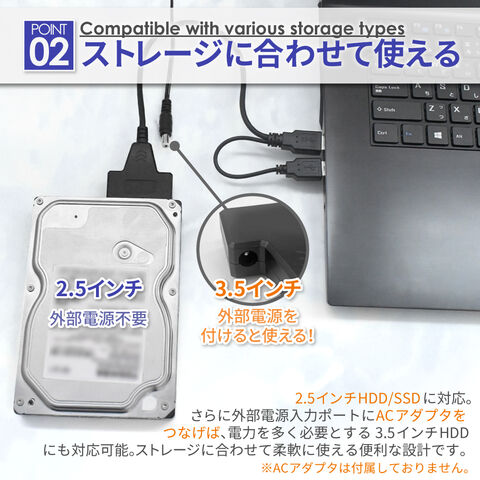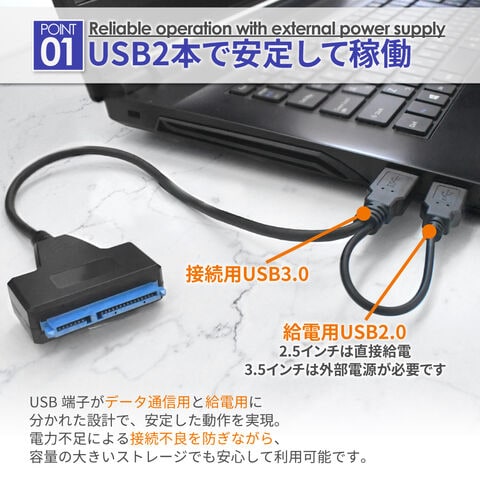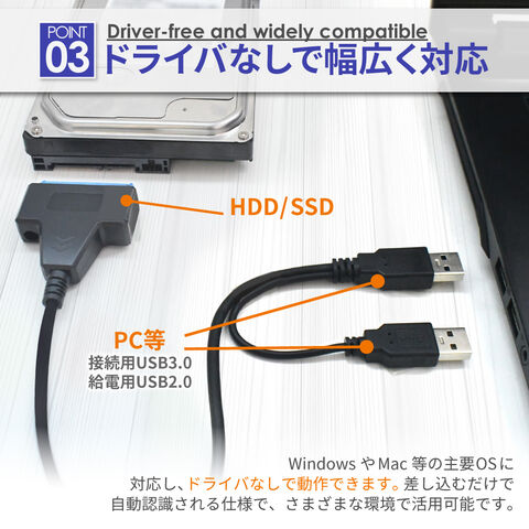 = 2.5インチのHDD / SSDへ、これ1本で接続可能