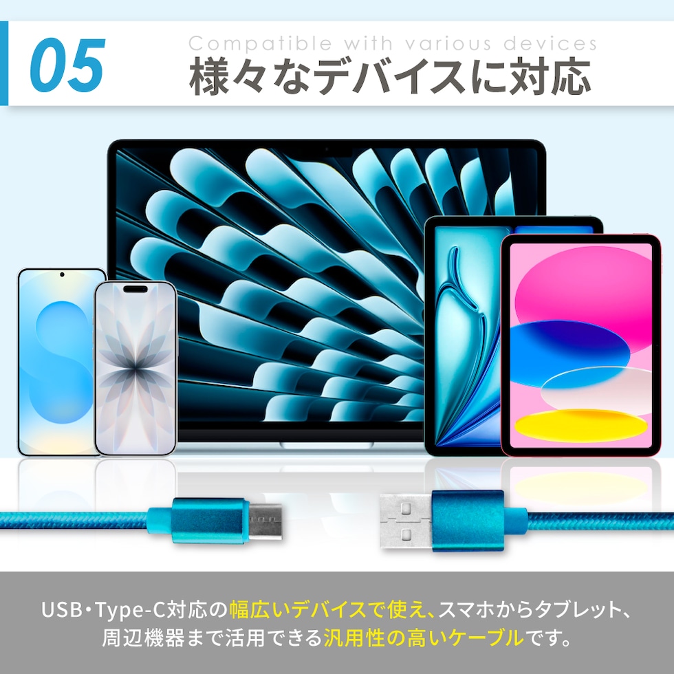 = USB・Type-C機器全般で使える汎用性の高いケーブルです