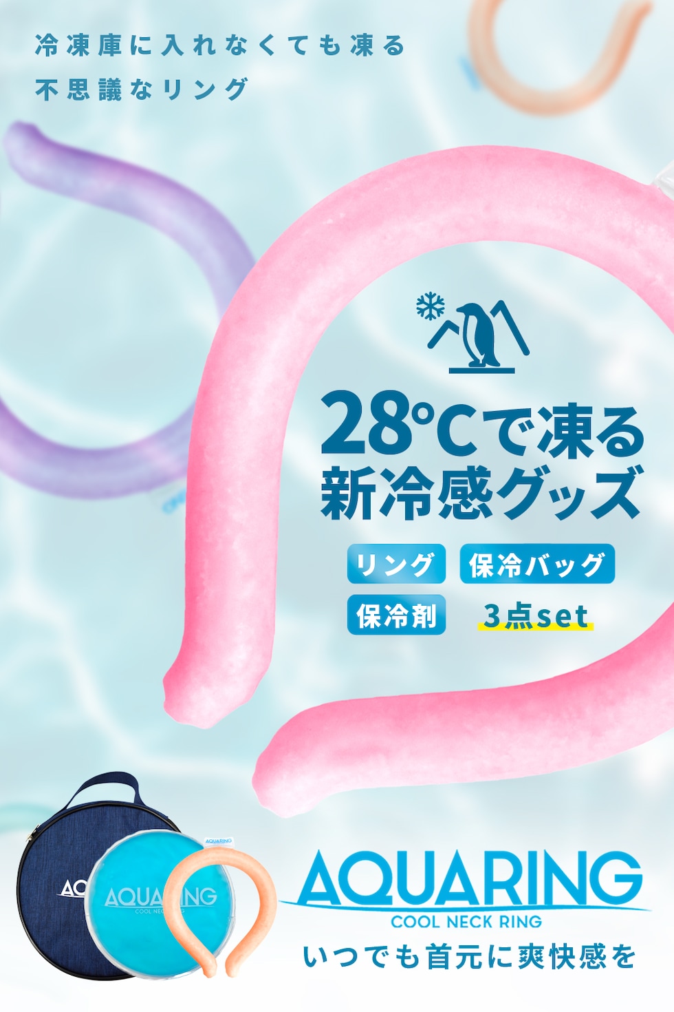 アクアリング専用の保冷剤、保冷バッグの3点セット
