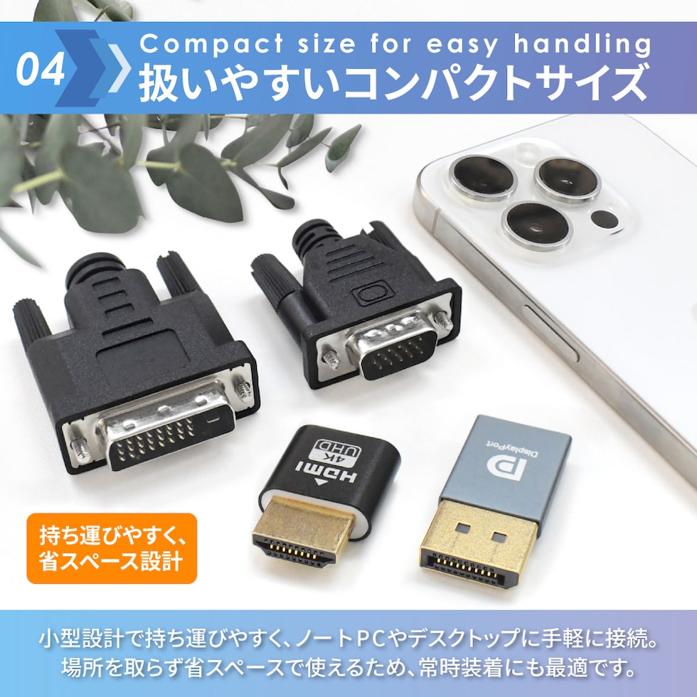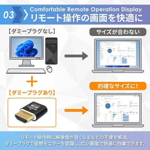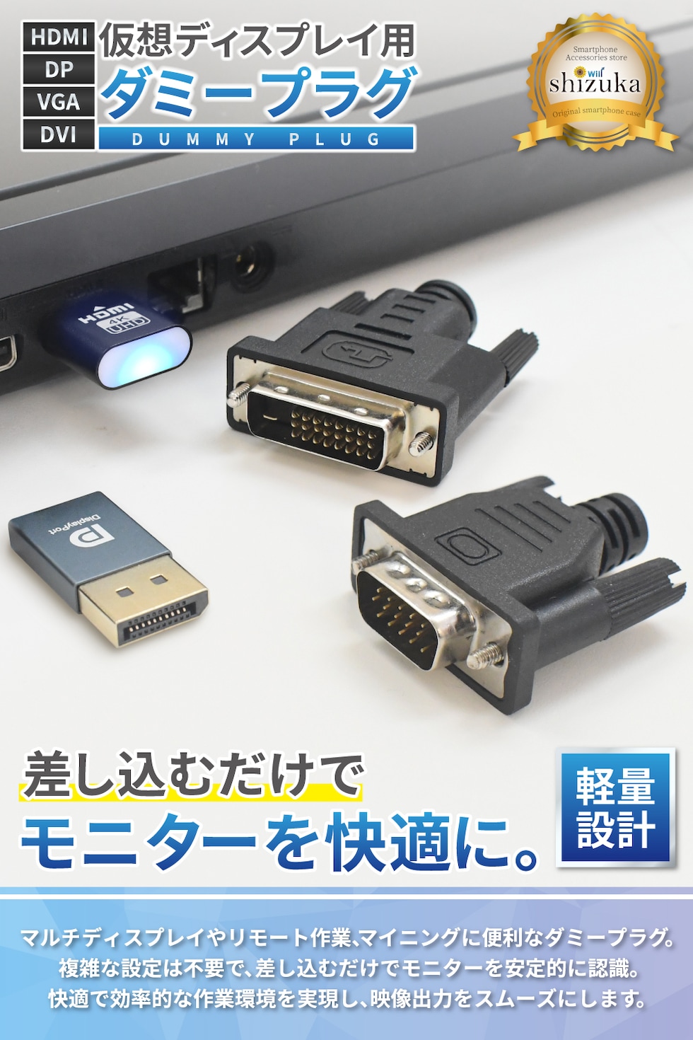 シズカウィル ダミープラグ 仮想ディスプレイ HDMI 仮想デスクトップ バーチャル フェイクディスプレイ ディスプレイエミュレータ パソコン PC Windows Mac リモートワーク HDMIダミープラグ ブラック 1個入り