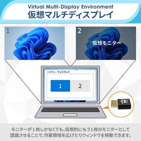 = 仮想モニターを追加し、ウィンドウ移動や作業領域を拡張します