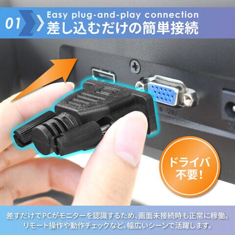 = ドライバ不要、PCに挿すだけすぐにモニターとして認識されます