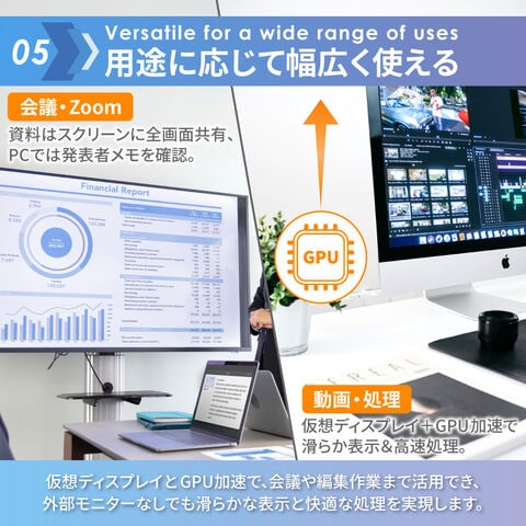 リモート作業や高解像度出力に対応し、快適な環境を実現します。