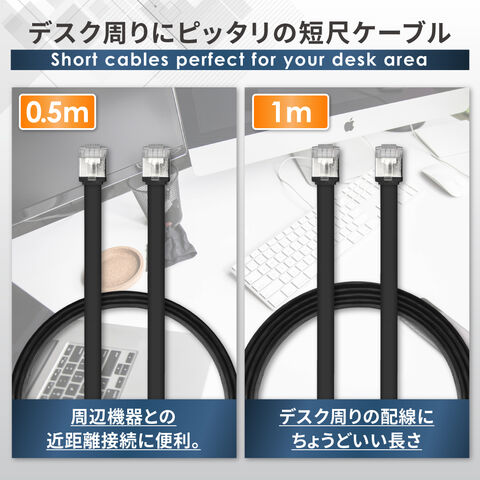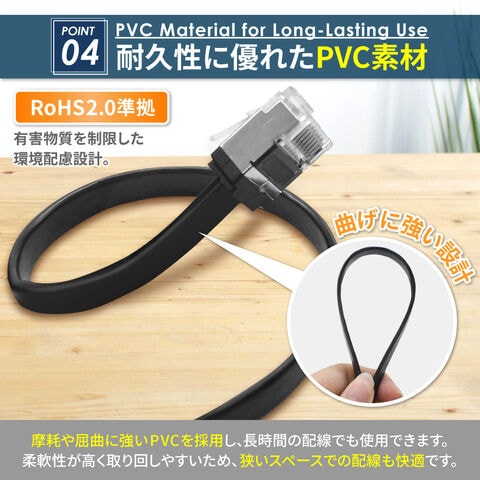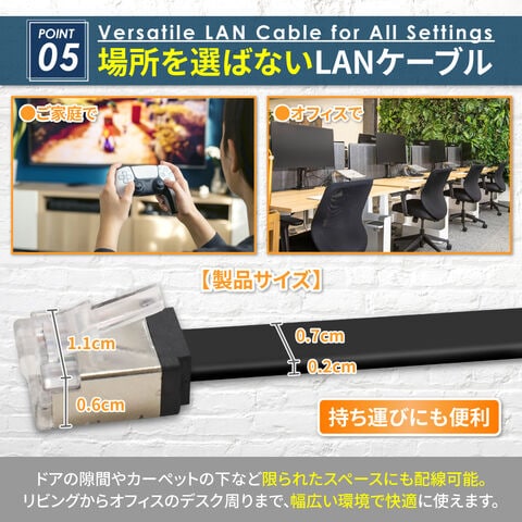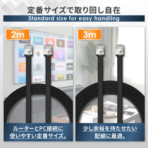 シズカウィル LANケーブル コネクタ 高速 フラットタイプ ネットケーブル CAT7 ブラック 3m 1個入り