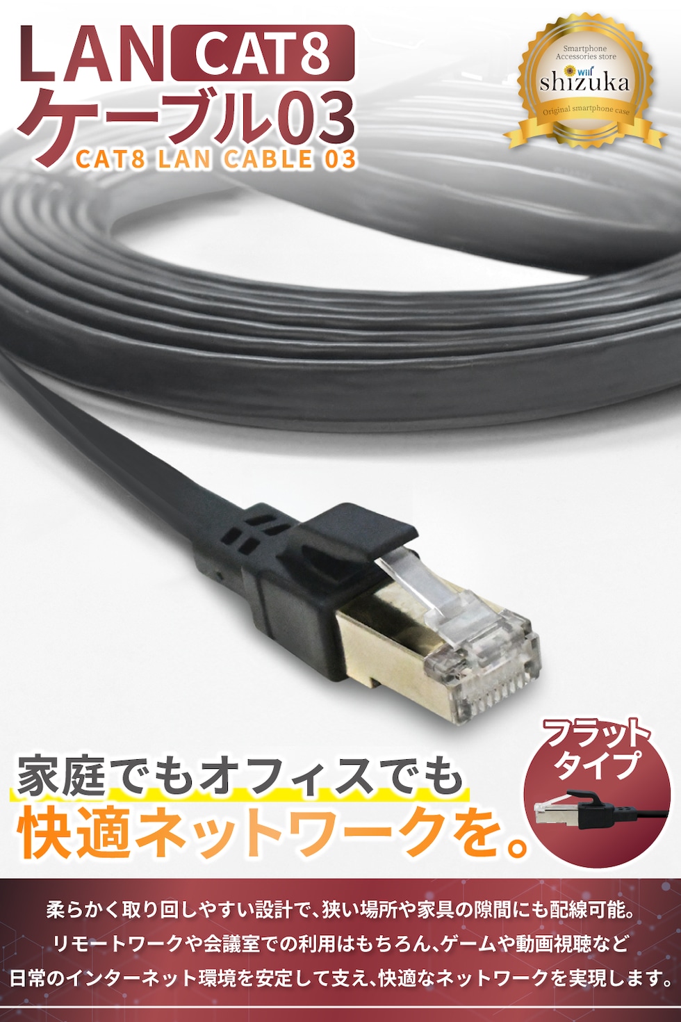 LANケーブル 03CAT8 LAN CABLE 03 2000MHz 40Gbps 対応