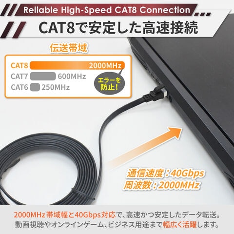 超高速・安定のCAT8ケーブルで、快適なネットワーク環境を実現!