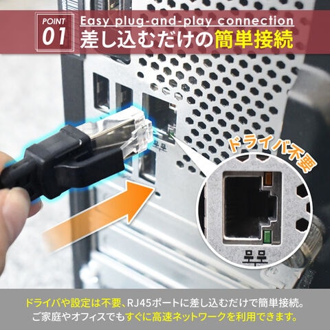= ドライバ不要、RJ45ポートに差し込むだけですぐ使える