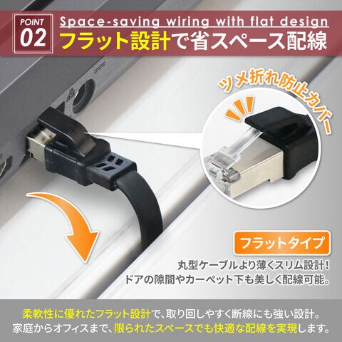 = 厚さ約2.0mmで、ドアの隙間やカーペット下もスッキリと配線