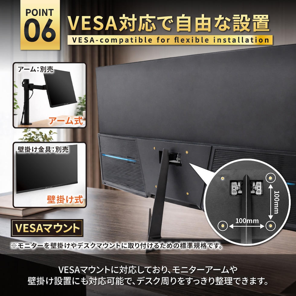 ※モニターアーム・壁掛け金具は付属しておりません。別途ご用意ください。