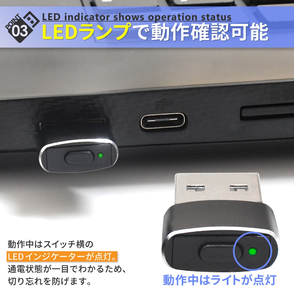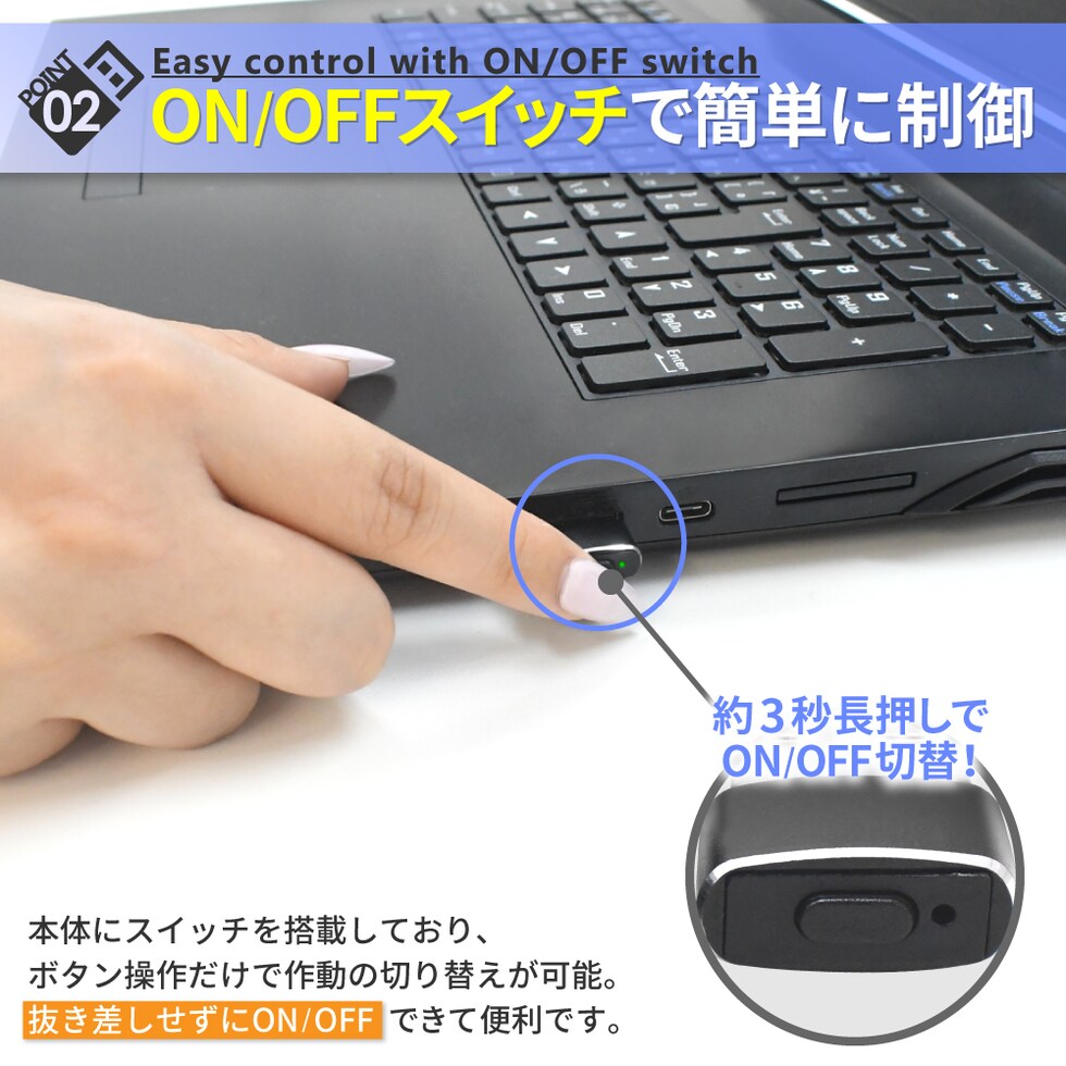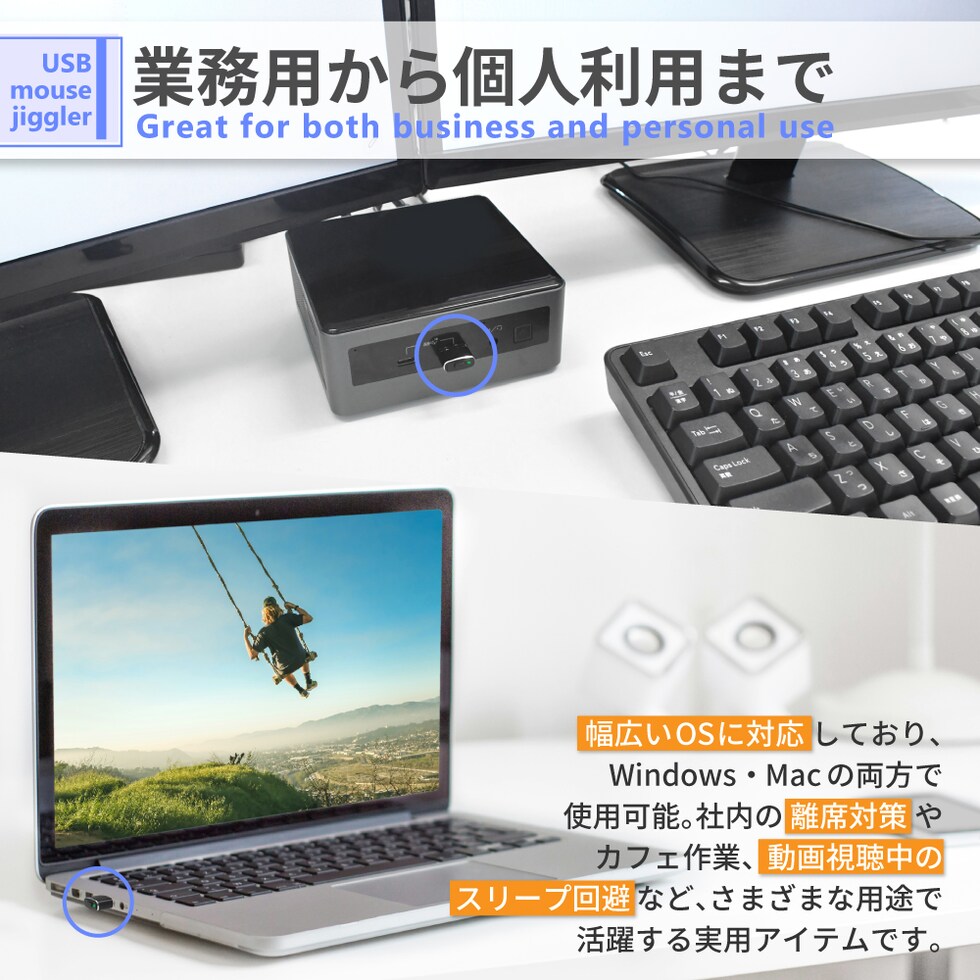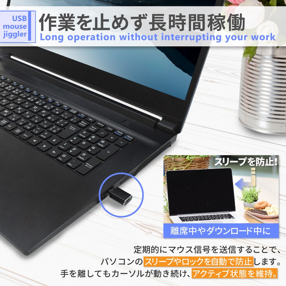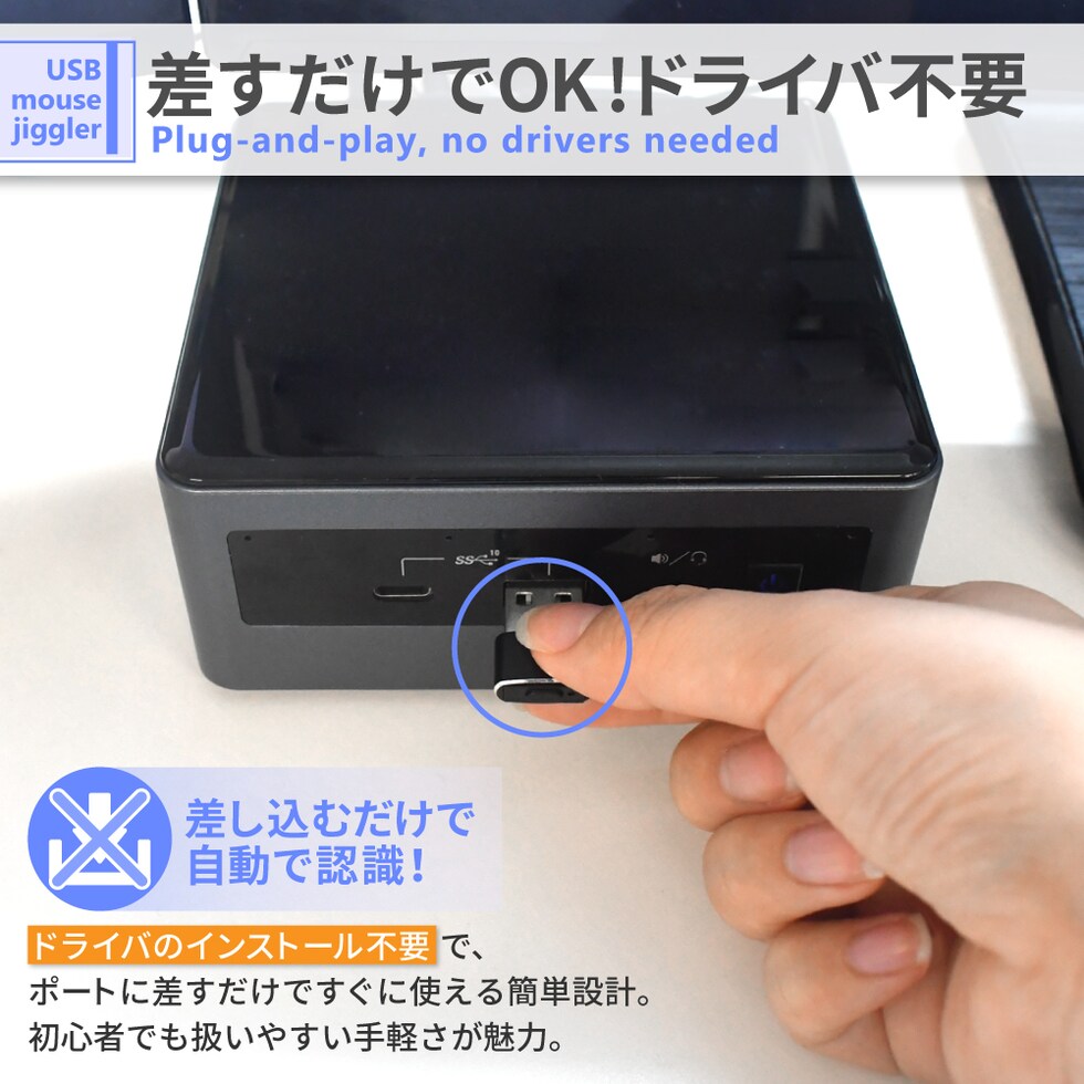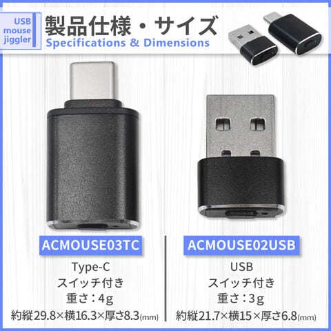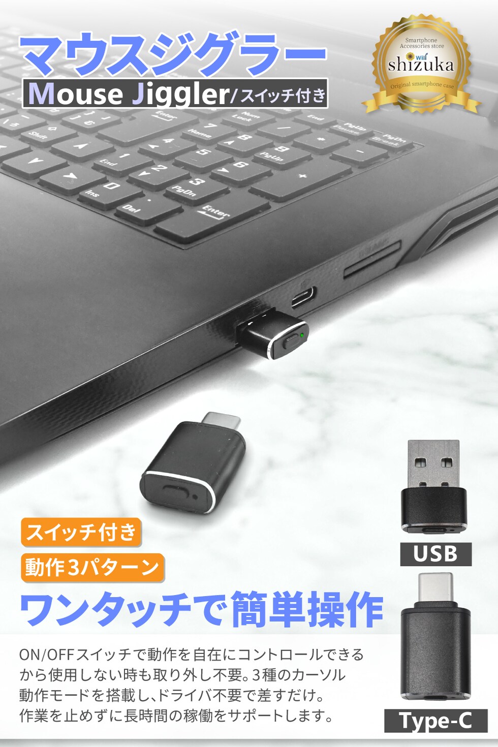 シズカウィル マウスジグラー スイッチ付き マウス ジグラー マウスムーバー マウス操作 マウス移動器 ランダム軌道 自動カーソル 自動マウス パソコン PC Windows Mac スリープ防止 ブラックアウト防止 テレワーク リモートワーク ゲーム 挿すだけ Type-C ブラック 1個入り