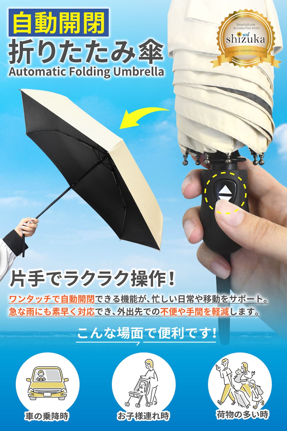 = 片手で簡単に操作でき、急な雨にも素早く対応できます