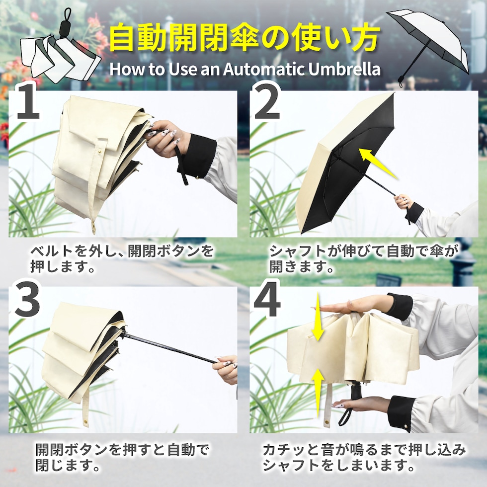 ・開閉時は必ずボタン操作で閉じた後、持ち手のシャフトを