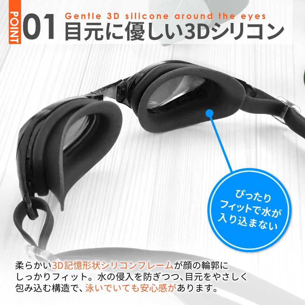 = 柔らかな3D記憶形状のシリコンフレームが水の侵入を防ぎます。