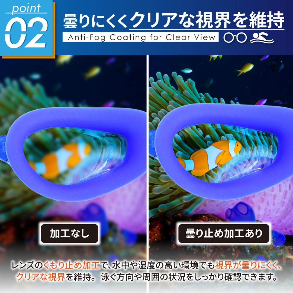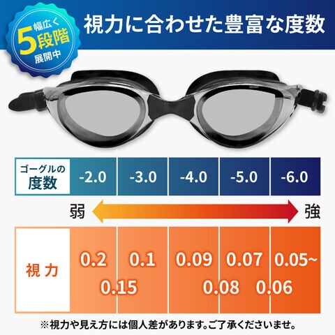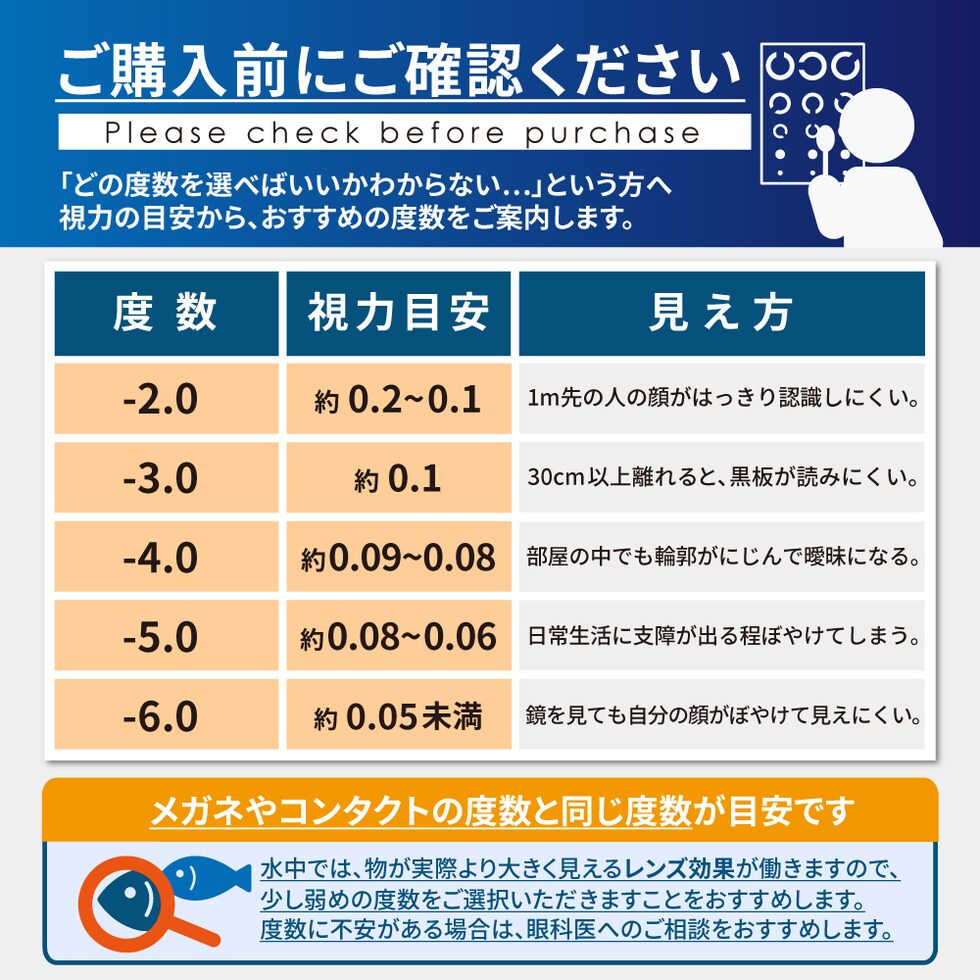 -2.0~-6.0の選べる度付きレンズで、水中のぼやけをクリアに補正!