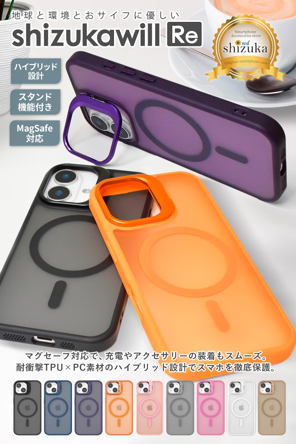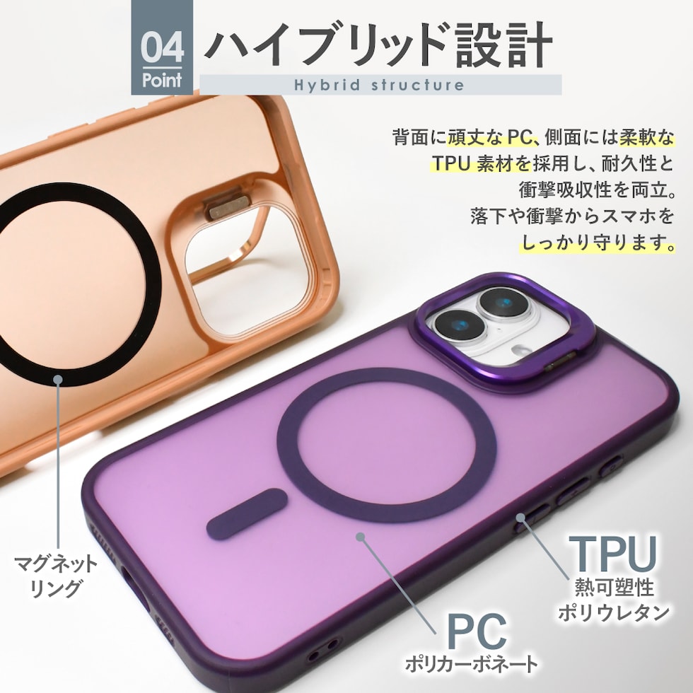 素材:PC(ポリカーボネート)・TPU(熱可塑性ポリウレタン)・マグネット