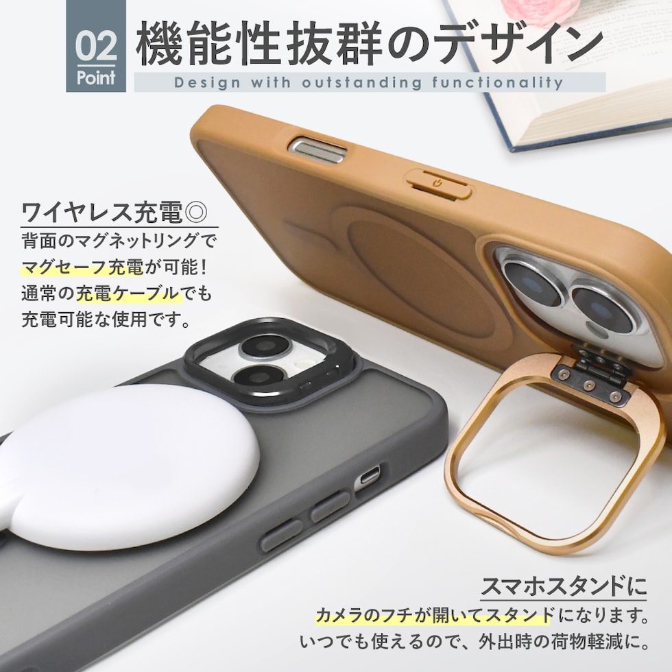 生活を快適にする、マグネットリング・カメラカバースタンド付きのケース!