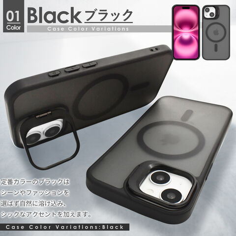 シズカウィルRe iPhone 17 ケース MagSafe対応 マット カバー ワイヤレス充電 耐衝撃 スタンド付き ハイブリッド5 スマホケース ブラック 1個入り