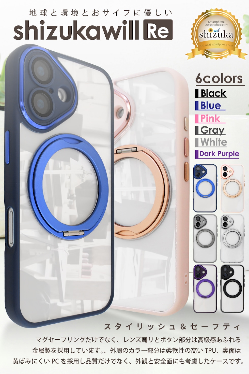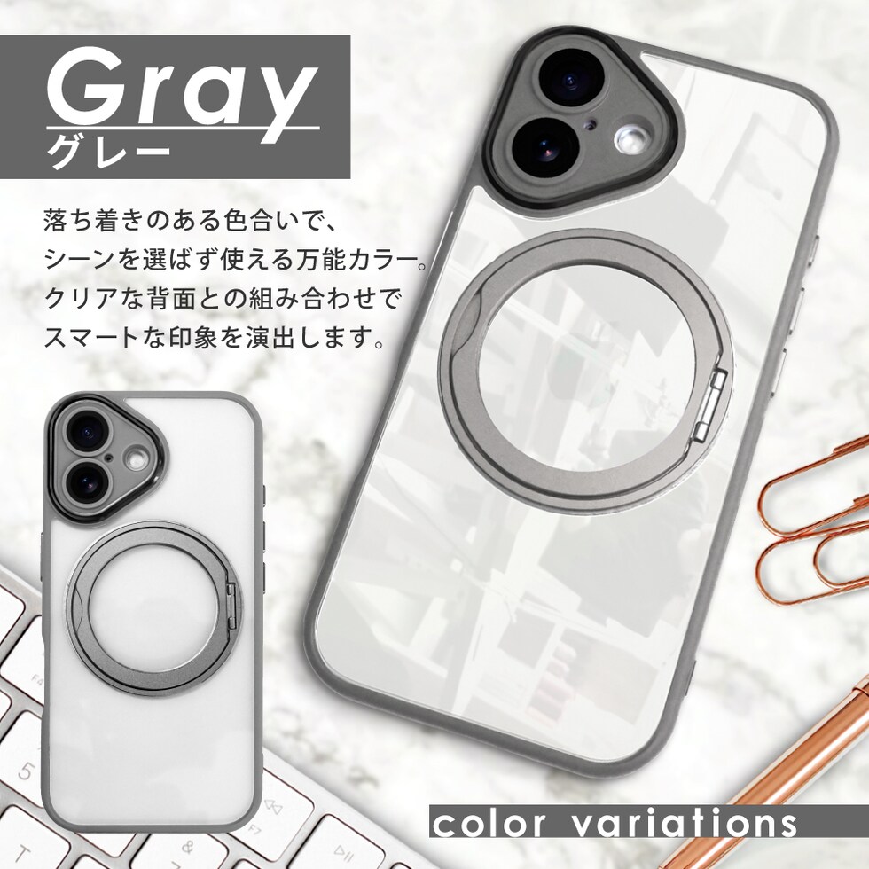 シズカウィルRe iPhone 14 ケース MagSafe対応 リング スタンド レンズ保護 カバー ワイヤレス充電 耐衝撃 ハイブリッド9 スマホケース グレー 1個入り