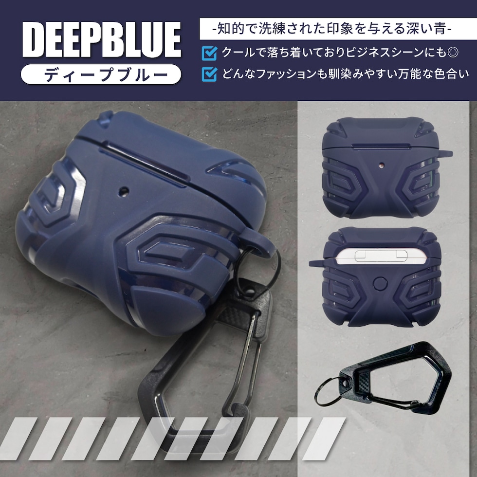 シズカウィルAirPods 3 ケース カバー カラビナ付 TPU 耐衝撃 イヤホンケース C02 ディープブルー 1個入り