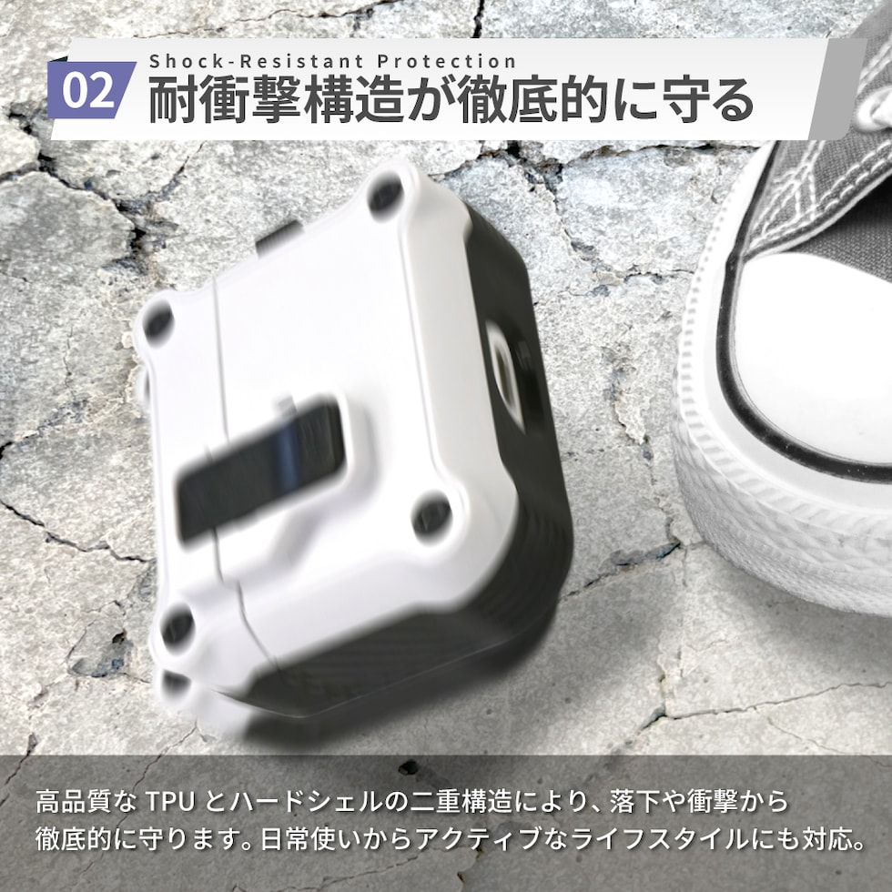 TPU×PC素材の頑丈なハードシェルタイプAirPodsケース