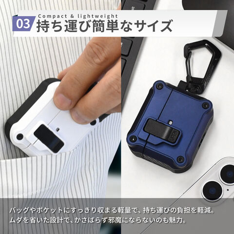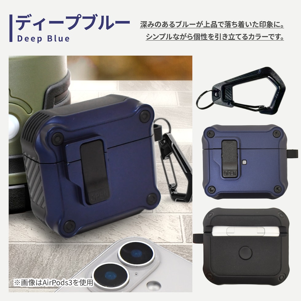 シズカウィルAirPods Pro 3 ケース カバー カラビナ付 耐衝撃 ロック機能 イヤホンケース C04 ディープブルー 1個入り