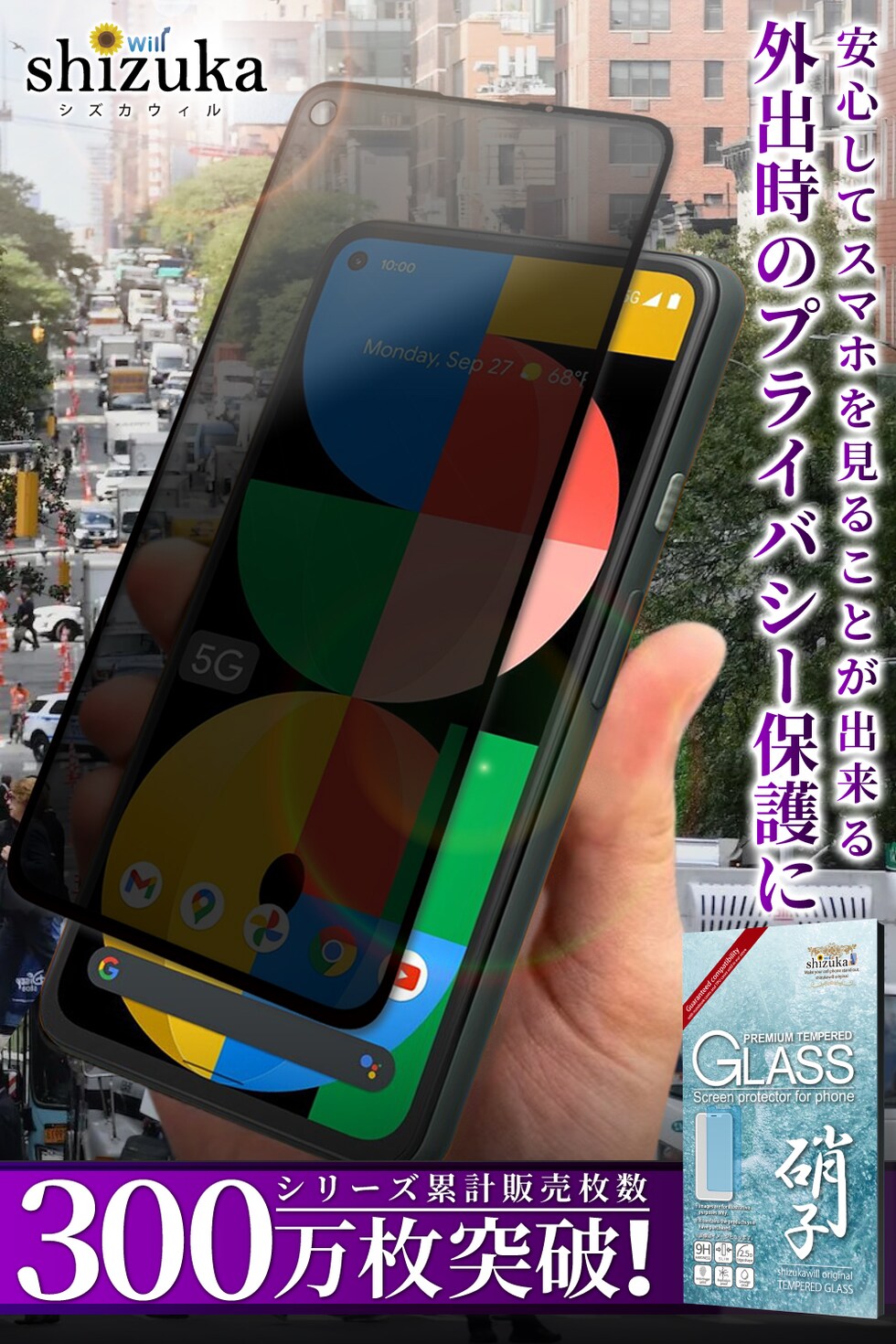 シズカウィル Google Pixel4 用 ガラスフィルム 強化ガラス 全面保護 保護フィルム フィルム 覗き見防止 液晶保護フィルム ブラック 1枚入り