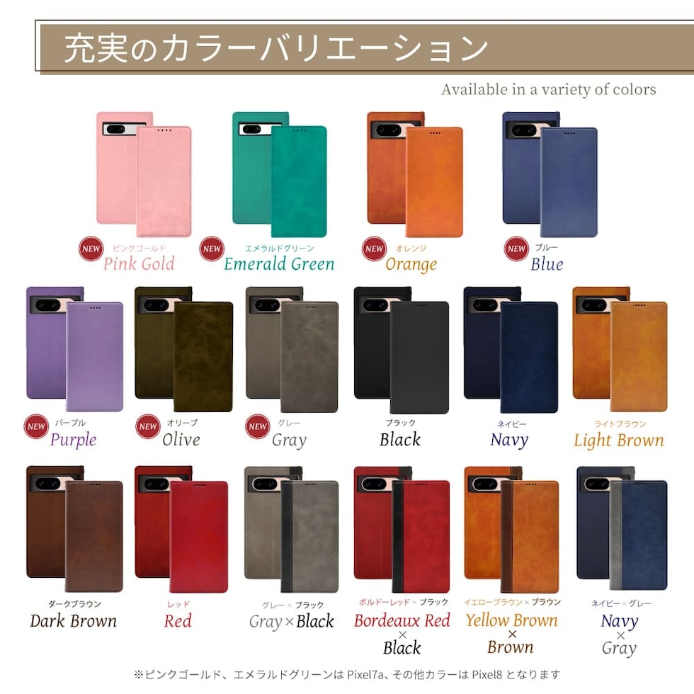 シズカウィル Google Pixel7a ケース カバー 手帳型 本革調 レザーケース ブルー 1個入り