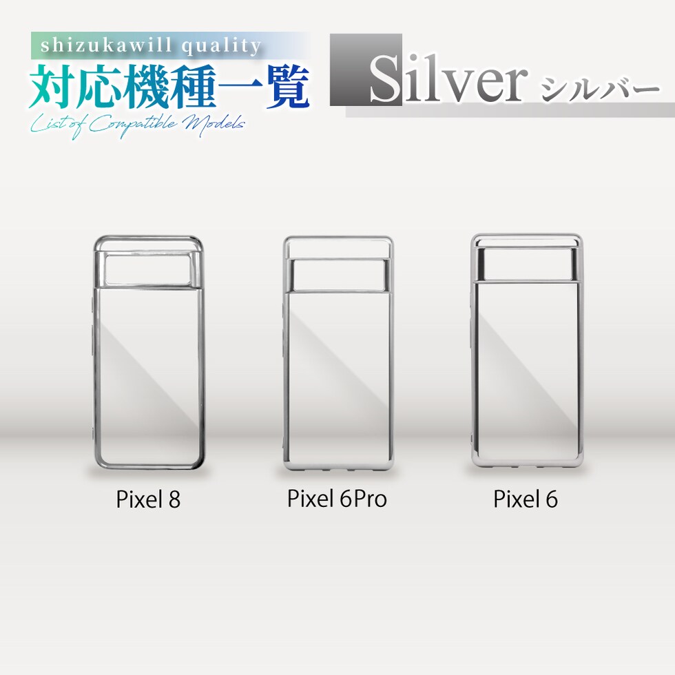 シズカウィル Google Pixel 8 クリアケース ケース カバー サイドメッキ加工 クリア ケース シルバー×クリア 1個入り