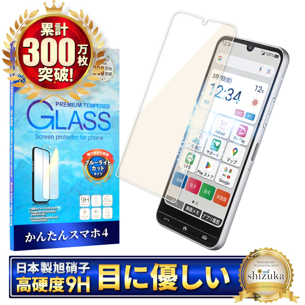 シズカウィル かんたんスマホ4 ガラスフィルム 保護フィルム ブルーライトカット かんたんスマホ4 A402ZT ガラスフィルム フィルム 液晶保護フィルム