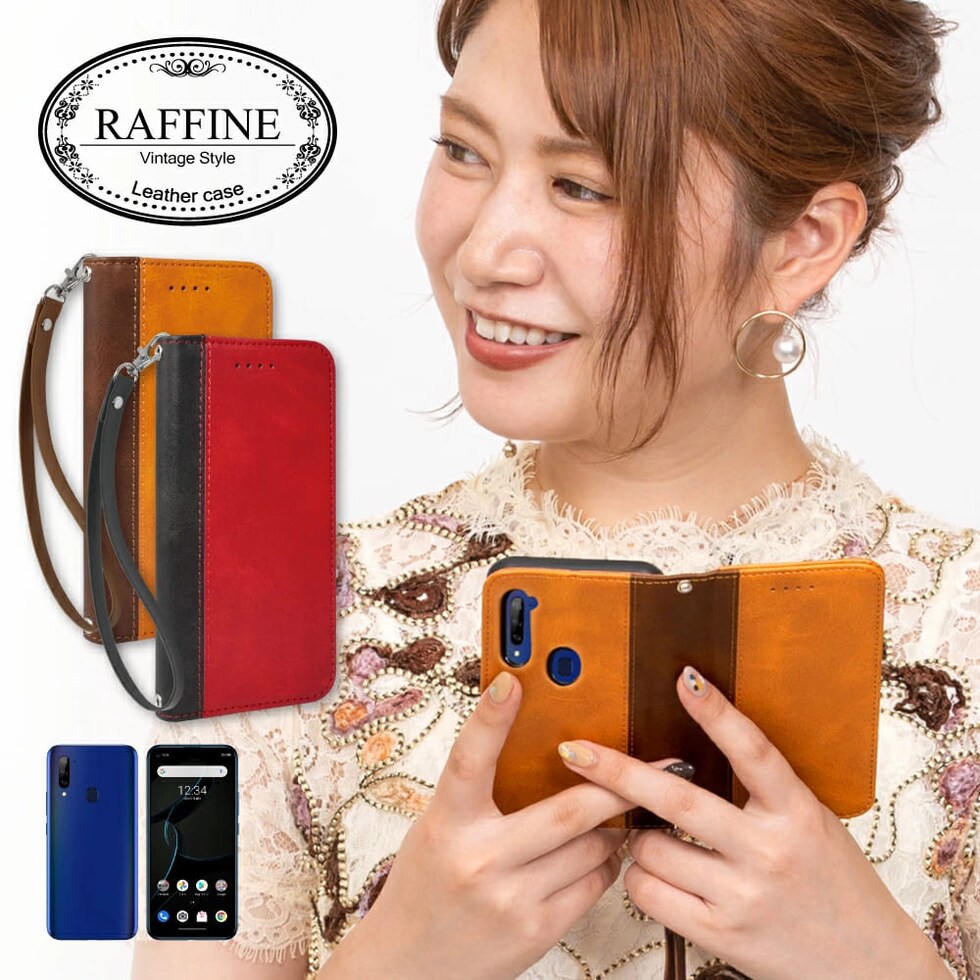 シズカウィル ZTE Libero 5G A003ZT ケース カバー 手帳型 本革調 レザーケース ボルドーレッド×ブラック 1個入り ロングストラップ