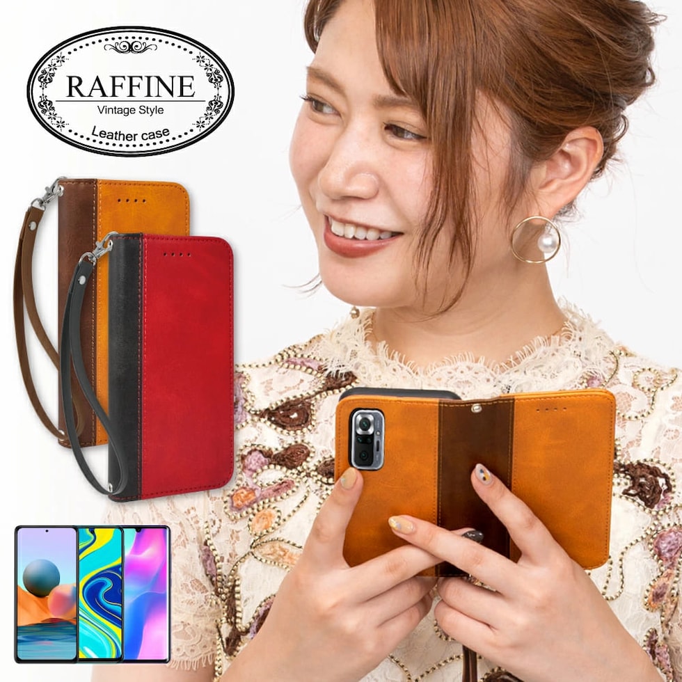 シズカウィル Xiaomi Mi Note10 Lite ケース カバー 手帳型 本革調 レザーケース ボルドーレッド×ブラック 1個入り ロングストラップ